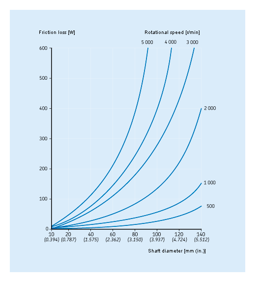 The diagram 1 provides an indication of the friction losses that may be expected when a radial shaft seal with a conventional sealing lip is properly installed and fully lubricated.