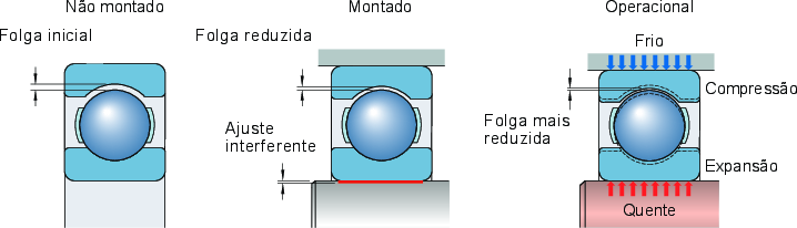 In most cases, bearings require a certain degree of clearance (→ Selecting internal clearance). However, in some cases, they may require preload (i.e. negative clearance → Selecting preload).